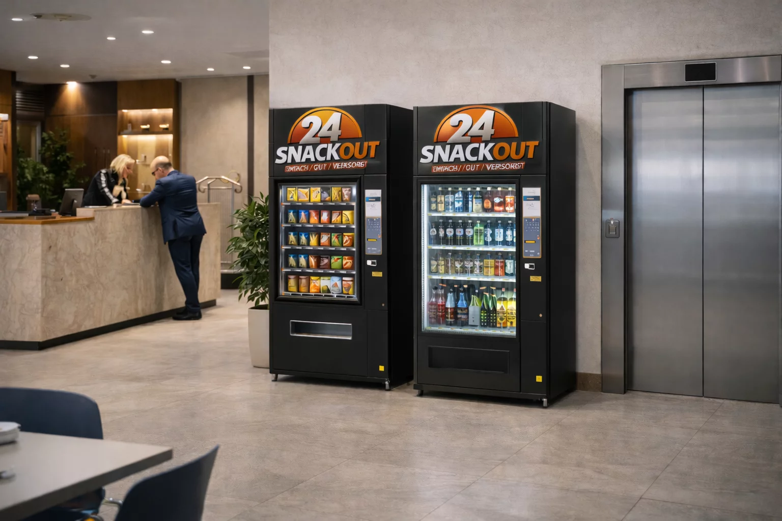 Wir versorgen Firmen mit hochwertigen Automatenlösungen, die rund um die Uhr Snacks, Getränke und Kaffeespezialitäten bereitstellen. Dank fachgerechter Pflege und schneller Servicezeiten sorgen unsere Automaten für reibungslose Abläufe und hohe Zufriedenheit bei Mitarbeitern, Kunden, Bewohnern oder Gästen. Snackout24 steht für flexible Automatenmodelle, faire Bedingungen, modernste Technik und persönlichen Vor-Ort-Service.
