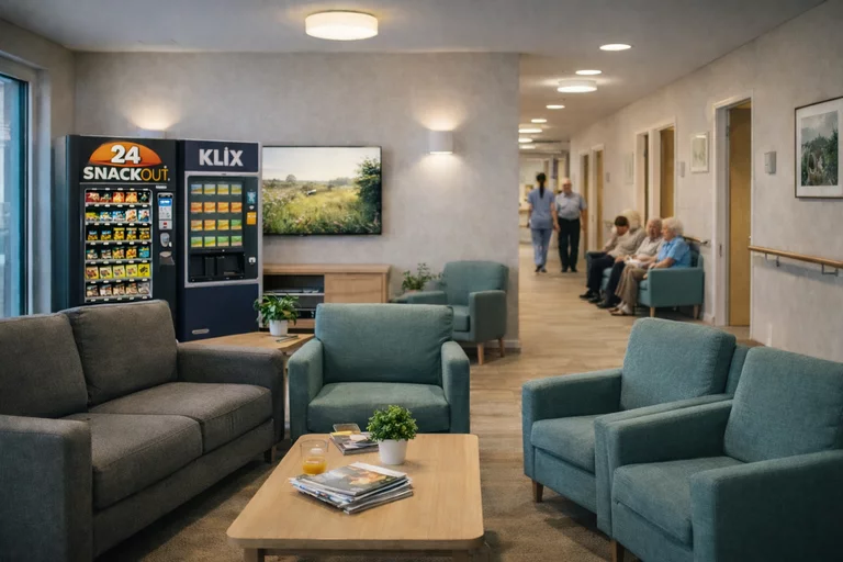 Snackout24 bietet Snackautomaten, Getränkeautomaten und Kaffeeautomaten für Pflegeeinrichtungen, Seniorenheime, Wohn- und Betreuungseinrichtungen. Unsere Lösung schafft eine zuverlässige Versorgung für Mitarbeitende und Besucher – hygienisch, unkompliziert und rund um die Uhr verfügbar. Wir übernehmen den kompletten Betrieb: Aufstellung, Befüllung, Wartung, Hygiene und schneller Vor-Ort-Service.